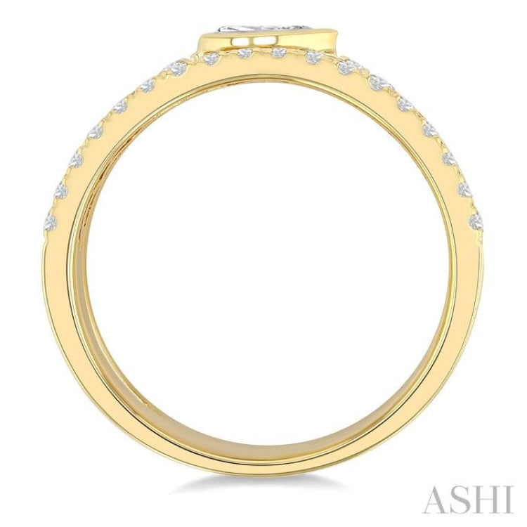 3/4 Ctw Split Twin Row Bezel Set Pear and Round Cut Diamond Fashion Ring in 14K Yellow Gold